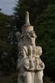 寅さん像にピント合わせ駅舎のボケ方、照明にのボケ方綺麗。 |