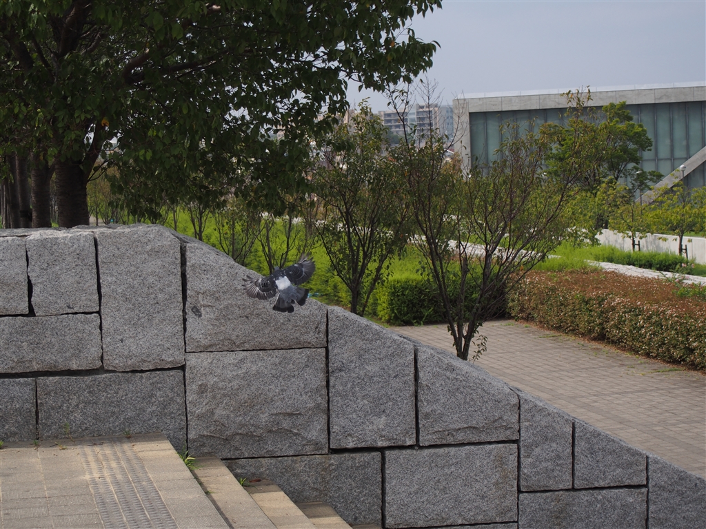 ハトが飛び立つのを見越して撮影しました。