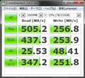 換装後の結果は、SATA2なので読込み、書込み速度は約250MB/sに達しています。