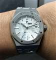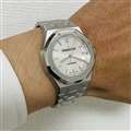 41mmの15400と37mmの15450の二者で比較するならば腕周りで選択は限られてきますが、無理をすればどちらも着けれなくはありません。そういう状況でどちらを選ぶのかとなると、そこはロイヤルオークに何を求めるかによります。ラグジュアリースポーツに分類される時計はありますが、15400、15450共にラグジュアリーとスポーツを両立するのは厳密には難しく、ラグジュアリーさを求めるならバランスに優れ美しく高級感のある15450でしょうし、外見的な位置のバランスが気にならずスポーティーさを求めるなら15400となるでしょう。