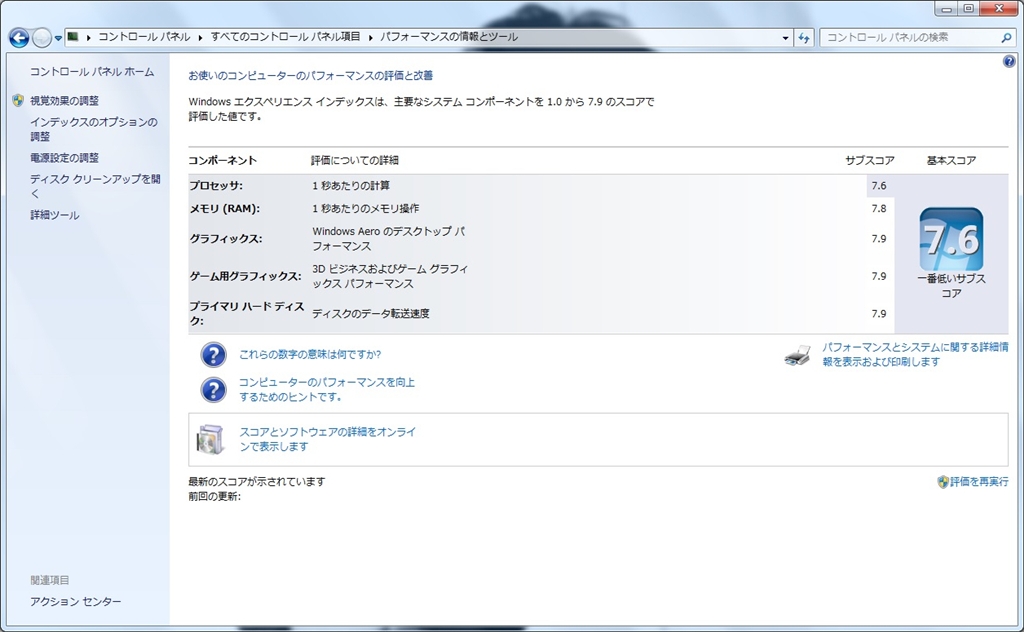 『Windows Experience Index』インテル Core i5 4670 BOX Kikeyさんのレビュー・評価画像3/3