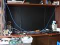 ・リモコンを突然受け付けなくなり、本体電源ボタンでも電源が切れない。