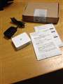 とてもシンプルな形状とスッキリした色合いの白がいいバランスで、部屋に置いても目立たないのでどこにでも合いそうです。ACアダプターが付属していますが、出力は5V仕様のものです。ACアダプターのかわりにモバイルバッテリーも利用できました。