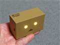 充電状態を知らせる「光る目」、電源ボタンは「三角の口」、段ボール感を追求した色、形、印字、付属の麻袋風ポーチなど、所有する悦びと使う楽しみは格別です。