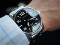 大きく目立つアラビア数字インデックスと幅広の針が視認性抜群。