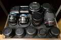 望遠レンズ 広角レンズ 等々 詰めればまだ入りますが、扉のガラスから見るには程よい感じで一杯になってます。