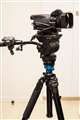 カウンターバランス機能は無いが、DSLR や小型ビデオカメラ(写真は SONY HDR-CX900)では、プレート移動で中央にバランスさせればカウンターバランスがほぼ取れるので問題無し。