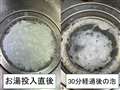 画像左)しっかり泡がくっついている 画像右)お湯で流しただけではまだ汚れが残る |