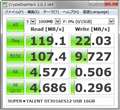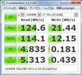 読み出し速度は32GB版よりやや低下、書き込み速度も半分近くに低下。書き込み速度が容量に比例するタイプの様です。