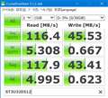 読み込みは110MB/s強、書き込みは40MB/s強と圧倒的な速度。 |