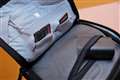 可搬性ですが、電車移動中はショルダーベルトを取り付けて移動します。