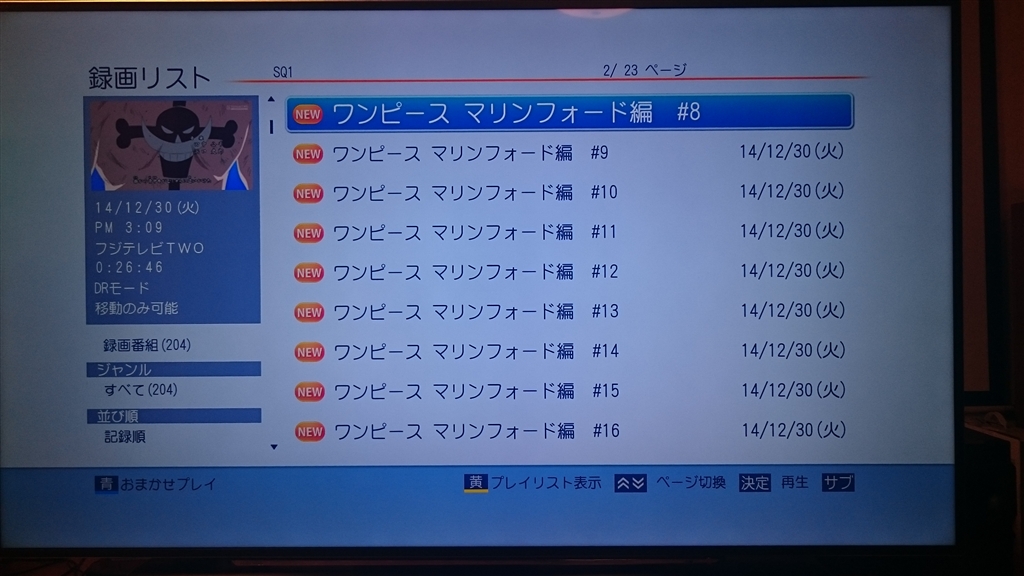 通常録画した番組の一覧表示。これは、RDシリーズの方がよかった。