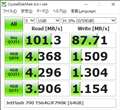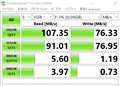 私のものはシーケンシャルで30MB/sほどで他のレビュアーさんのものよりも低いです。不満は特にありませんが残念な気持ちです。