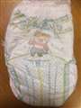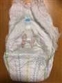 もう少々放置して、たくさんの量を吸収させると、おしっこサインの青線も消えてしまい、外側が湿っぽくなってきます(服が濡れたりはしませんが)。それだけ吸収しているんだなと。最適なギャザーで便も漏れにくいですね(寝ていたりすると背中側に漏れることはありますが・・・)。