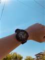 ケースは大きいが、チタン製のため重量120グラムと意外に重くなく、シリコンベルトの装着感は良い。