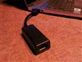 USBポートに挿して使うEthernetアダプタである。Ethernetは1000BASE-T/100BASE-TX/10BASE-Tに対応している。NASとの接続にも使えるレベルの高速性を持っている。