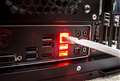 LANコネクタは、通電時には赤色LEDで派手に光る。