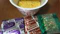 熱湯を注いで5分後に液体スープと粉末スープを投入し、よくかき混ぜたら出来上がり。 |