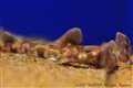 アブがエサの虫を捕らえたところです。顔面がこんな風になっているとは…。 |