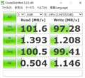 スペック540MB/sあたりですが、実測平均400MBくらい。まぁまぁかな。