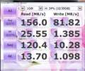 【読書込速度】sequential readで120MB/s程度、sequential writeで35MB/sを継続しています。使用しているUSBメモリに親指ほどの大きさの機種もありますが、小さいものは時間の経過とともに速度が落ちてしまいますが、この機種は速度が落ちませんでした(1ファイル4GBで検証)。