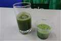 青汁の比較。左がグリーンプレッソ、右がミキサーで作ったもの |