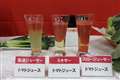 トマトジュースの比較。繊維がほとんど混じらず、時間が経っても分離しないのが特長 |