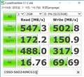 【読込速度】547MB/s、速いです。あとちょっとで公称値といったところでしょうか。ベンチもあっさり終わってしまいました。