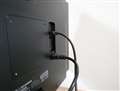 外観は至って普及帯液晶・エントリーモデルという印象です。背面の各コネクタが直角に接続されるなどコストダウンの典型にも思えます。