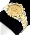新デザインのタキメーターベゼルとコンビモデルが美しいモデルであり、シャンパンゴールドの文字盤と 8P ダイヤダイヤルを装備したゴージャスなモデルである。