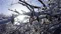風景描写では、参考写真のように、葉や枝の分解が高い上に、明暗と色調のコントラストが強烈なため、秋晴れの穏やかな自然風景とは随分違った描写になりました。