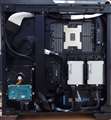 ATX対応で、フロント5インチベイレスなので、内部は広々です。電源ユニット部を仕切りで区分けしてあり、本格水冷構成が出来る作りになっています。