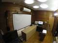 (天井からの吊り下げ式のプロジェクター・スクリーンを使用にて、保安灯点灯)