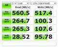 ベンチマークは、貼り付けた画像の通りでシーケンシャルリードは、公式スペックどおり、シーケンシャルライトもまあ誤差の範囲内でしょうか