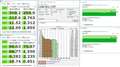 そして一番見ていただきたいのがAS SSD Benchmarkの平均速度グラフで他のベンチマークと比べれば書き込みの最大値は263MB/sと高くないですが安定感は圧倒的で速度が落ちるところも僅かしかなく、速度低下の数値も234MB/sとこれでも他社製の平均値に十分匹敵する数値です。