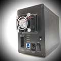 他の書き込みでも取り上げられていますが、3.5 inch HDD 2台構成で連続運転した場合の発熱に対して、内蔵のファンは空冷効果が不十分な気がします。