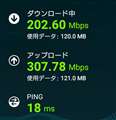 日中、空いてる時間帯でSpeedtestの計測で300Mbps程度だったのが500Mbpsに。