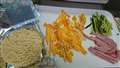 細切りの、炒り玉子、ハム、きゅうりを具材としました。 |