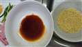 醤油だれに茹でた麺を絡ませます。 |