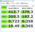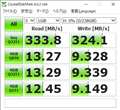 CrystalDiskMarkでシーケンシャルリード、ライト共に300MB/s超え