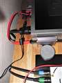 @機器がとても軽量なため、硬いUSBケーブルをつなぐと、写真のようにひっくり返ってしまう。