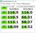 しかし、公証のリード/ライト 220MB/s以上の性能ながら、実測75MB/sと今迄と大して変わらない。