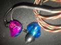 外観からですが、カスタムIEM的なデザインでなかなかカッコいいと思います。当方では写真のパープル&ブルーカラーを選びました。
