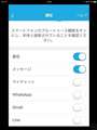 設定で、時間表示、歩数、心拍、歩行距離、ランニングスタート(ワークアウト)、消費カロリー、バッテリー残量、の表示・非表示と表示順を設定可能。ユーザー指定時刻のお知らせバイブを設定、スマホ側通知の選択(通話、メッセージなどのほかに gmail、lineあり)設定が可能(iOSの設定で通知センターに表示させていれば)。