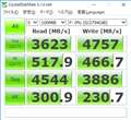 【書込速度】 大きいデータの連続書込では内蔵ドライブの性能を存分に引き出せるか、わずかに上回りますが、小さいデータのランダム書込が比較的遅めです。