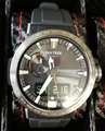 タフソーラーと電波時計が欲しくなりあれこれ思案していると、アナログとデジタル表示でトリプルセンサー付きのプロトレックを発見!量販店にてPRW-7000FC-1JF 辺りの実物を見るも、大きさにちょっと躊躇してましたが、一回りコンパクトなクライマーライン PRW-60のが発売されたので即購入してしまいました。プロトレックシリーズの中ではコンパクトですが、寸法:W4.72×H5.05×D1.33cmは決して小さくは無いですね。今まで使用していた腕時計が200gほどあったので質量:約69gは、装着感が非常に良くフィットします。軽くてつけていた事を忘れます。 ブレスタイプのバンドであったり、サファイヤガラス使用で200M防水だったらもっと満足なんですけどね。とはいえ、シンプルなデザインで、視認性や装着感が良く、心くすぐるセンサー類機能は面白く満足してます。
