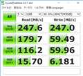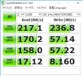 RAID6への移行完了後に、試しに1GbE×2系統接続にしてTS-453Beのsmb.confをSMBマルチチャネル有効になるようTelnetでログインして書き換えてベンチしてみたところ、しっかりマルチチャネル動作もしてシーケンシャルで250MB/sの速度が出ました。