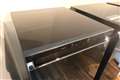 1枚板のガラス素材を、前開きタイプのフリーザーとしては業界で初めて採用。オーディオ家電のように美しく高級感があり、実物も好印象だった。ドアの取っ手部分にはメッキのアクセントが施されている。天面のガラステーブルは100℃までの耐熱性があり、熱を発する他の家電製品などを積み重ねることも可能。