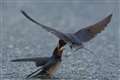 自然と同じ濁流を表現した大きな水槽で外から撮影 |