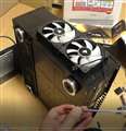 ところが簡易水冷が流行る前の時代のケースなので、ラジエター+ファンを入れるスペースがありませんでした。時代はNVMe, SSDすらRAIDが組めるようになり、たくさんあったHDD用ドライブベイは無用の長物です。ラジエターを入れるとドライブベイに干渉しまともには取付できません。